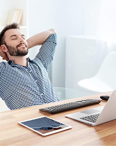 COMBINAZIONE DI TASTIERA E MOUSE WIRELESS COMPATIBILI - La combinazione di tastiera e mouse include una tastiera di dimensioni standard e un mouse ad alta sensibilità. Funziona con il tuo PC, computer desktop, laptop o notebook. Compatibile con i sistemi operativi Windows XP/Vista/7/8/10.