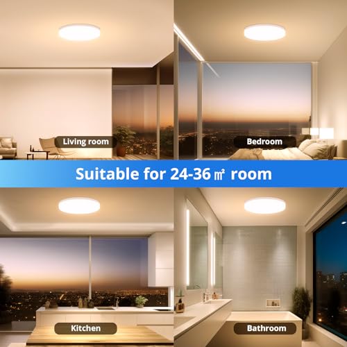 【Ampio utilizzo】 Questa plafoniera a led ha un design semplice e moderno, adatto a molte occasioni. Puoi utilizzare questa plafoniera a LED in una stanza di circa 24-36 metri quadrati. Plafoniera a led da 48w per camera da letto, adatta per bagno, camera da letto, garage, ufficio, sala riunioni, soggiorno, cucina, corridoio, scale, portico, ecc.