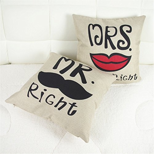 COME2BUY - durevole lavabile in lavatrice cotone lino tiro cuscino copertura 45 x 45 cm cuscino 45.7 cm x 45.7 cm, imbottitura non inclusa - Mr Right and Mrs Always Right design Design 4