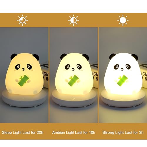 【Dimmerabile a 3 stadi】La luminosità della simpatica lampada notturna panda è regolabile tramite sensore tattile, 3 gradi di luminosità da regolare, la luce del sonno dura 20 ore, la luce ambientale dura 10 ore, la luce forte dura 3 ore