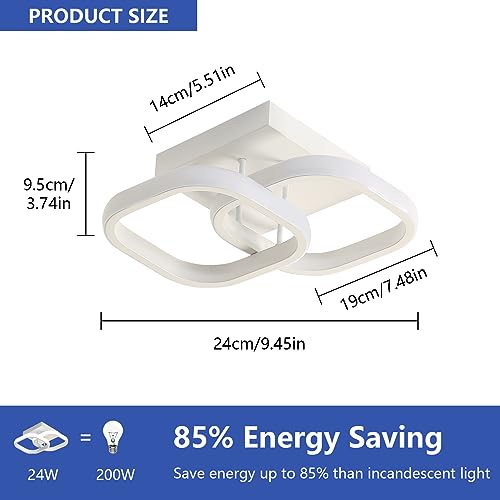 【Design Creativo】 Plafoniere a LED per interni in stile contemporaneo, semplicità della moda creativa con forma a 2 quadrati. La plafoniera ha accessori completi, viene fornita con istruzioni per l'installazione, facile da installare