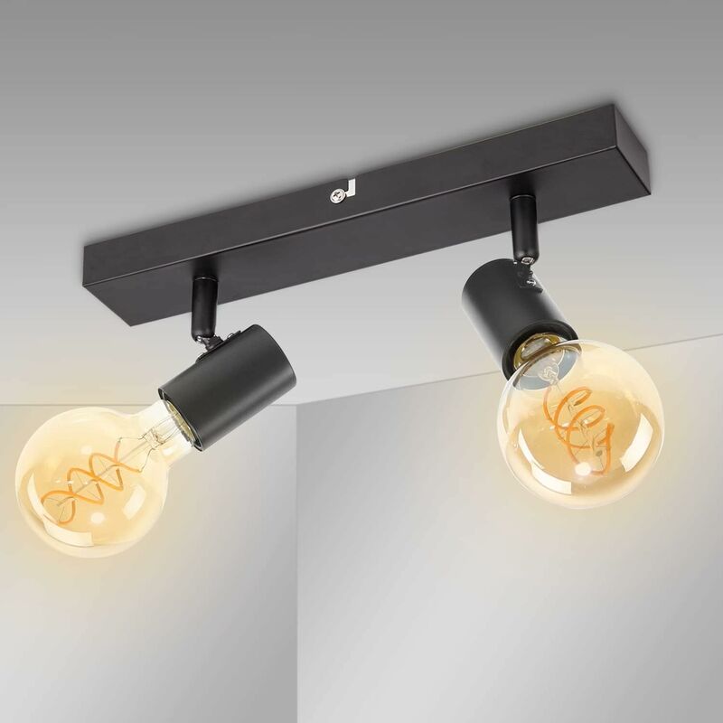 Plafonnier LED avec deux spots orientables style vintage ajustable pour salon chambre ou couloir support E27 noir élégant en métal IP20 lampe non comprise Faretto orientabile: plafoniera retrò in metallo nero, con inclinazione regolabile fino a 90° e rotazione fino a 340°. I faretti possono essere ruotati in modo indipendente per ottenere l'angolo desiderato. Questo versatile apparecchio può essere utilizzato come plafoniera, applique, lampada da camera da letto, lampada da cucina, lampada da soggiorno, ecc. Lampadina E27 non inclusa: questo moderno faretto è di colore nero opaco ed è compatibile con lampadine LED o alogene E27. È possibile scegliere la luminosità e la temperatura di colore più adatta, con una potenza massima di 60 watt. Facile installazione: questa plafoniera LED non richiede alcuna apertura e può essere utilizzata a soffitto o come applique. Fissare la staffa al soffitto/parete, quindi collegare la plafoniera alla staffa per completare l'installazione. Sono incluse