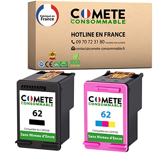 COMETE, Marca francese - 62 - Confezione da 2 cartucce d'inchiostro compatibili con HP 62 senza visualizzazione del livello di inchiostro - per cartuccia HP 62 Envy o fficejet -