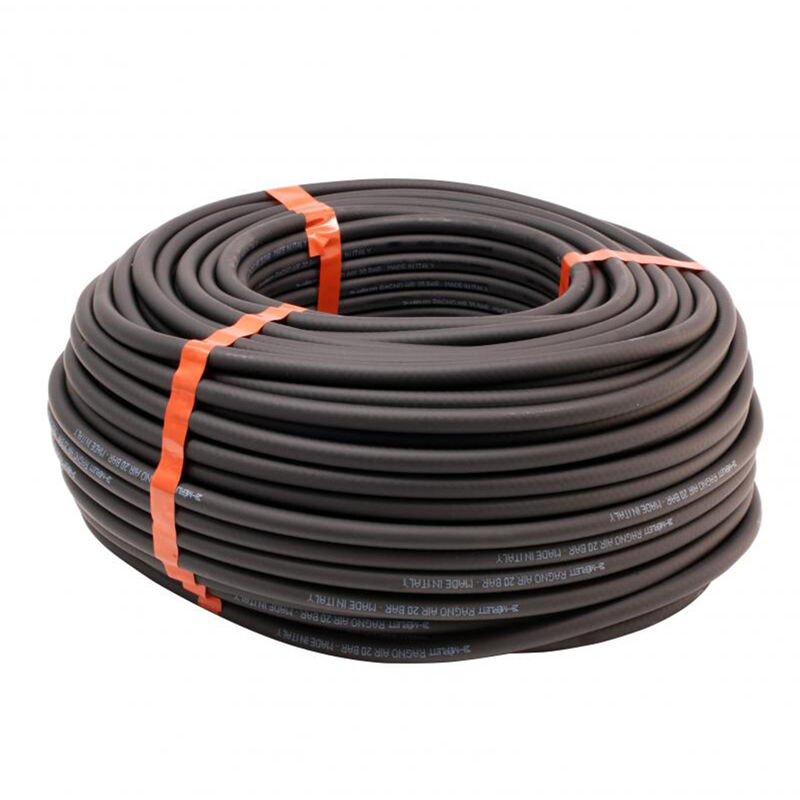 TUBO DI GOMMA Può essere impiegata in una gamma di temperature variante da -20° C a +60° C. Tubo per mandata d”acqua industriale, aria e fluidi non corrosivi. Sottostrato nero liscio in elastomero tiprene con ottime caratteristiche meccaniche e bassa permeabilità all”aria, rete di fili in poliestere ad alta tenacità, copertura in elastomero tiprene resistente all”abrasione e all”invecchiamento. Superficie esterna nera liscia. Art. TG/1 Øe x Øi: 14 x 6 Rotoli mt: 100 Pressione scoppio: 60 Pressione esercizio: 20 Art. TG/2 Øe x Øi: 17 x 8 Rotoli mt: 100 Pressione scoppio: 60 Pressione esercizio: 20 Art. TG/4 Øe x Øi: 19 x 10 Rotoli mt: 100 Pressione scoppio: 60 Pressione esercizio: 20 Art. TG/5 Øe x Øi: 23 x 13 Rotoli mt: 100 Pressione scoppio: 60 Pressione esercizio: 20 Art. TG/8 Øe x Øi: 30 x 19 Rotoli mt: 50 Pressione scoppio: 60 Pressione esercizio: 20