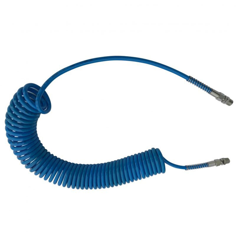 Spirale in POLIURETANO 12 metri 2 terminali 150/400 mm. Art. PC12/5 Lunghezza tubo: 12 m Tubo: 16x10 Ø esterno spirale: 109 mm Raccordo girevole: 3/8