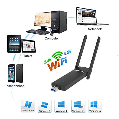 COMFAST WiFi Dongle cf-926ac 1200 Mbps Adattatore USB Wireless WiFi Dual Band 5.8 g/900MBPS + 2.4 G/300Mbps con Antenna Scheda di Rete Wireless per PC/Laptop/Desktop, Supporta Windows XP/7/8/8.1/10