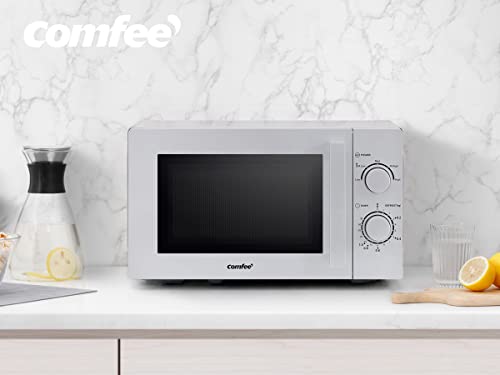 Comfee CMSN 20 si - Microonde singolo con 5 livelli di potenza, illuminazione interna, Easy Defrost, piatto girevole a 360°, due manopole, 20 l/700 W, colore: argento