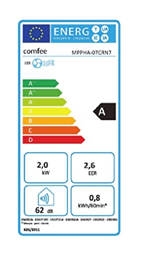 Comfee MPPHA-07CRN7, 7000 BTU 2,0 kW, raffreddamento, ventilazione, deumidificazione, dimensioni della stanza fino a 68 m³(25 ㎡), aria condizionata mobile con tubo di scarico