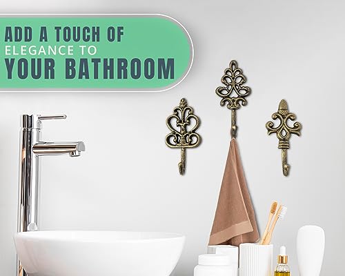 Comfify Ganci decorativi in ghisa Shabby Chic -Rustico - Metallico - Fascino di campagna francese - Grandi ganci decorativi appesi - Set di 3 -Viti e ancore per il montaggio incluso