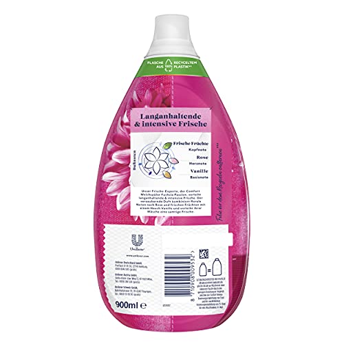Comfort Intense Fuchsia Passion è un ammorbidente ultra concentrato - già un piccolo cappuccio lascia la tua biancheria molto fresca profumata.