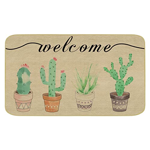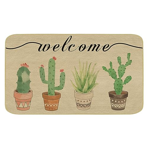 Comfoyar Cactus Vegetale in Vaso Zerbino Decorativo, Tappeto Aloe Floreale Antiscivolo Tappetino da Pavimento Benvenuto per Interni Esterni Ingresso, Patio, Garage 43 x 75 cm