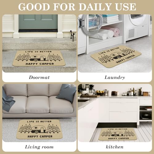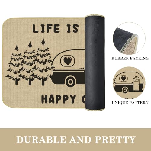Motivi eleganti e dimensioni perfette: questo zerbino è progettato con motivi eleganti tra cui camper, alberi, montagne e una tenda, che è un ottimo arredamento per gli ingressi. E misura 43 x 75 CM, che può adattarsi alla maggior parte degli ingressi o dei portici. Il design a basso profilo dello zerbino Comfoyar può impedire che il tappetino si blocchi durante l'apertura e la chiusura delle porte.