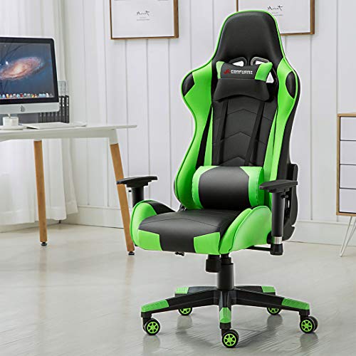 JL Comfurn, sedia ergonomica girevole da ufficio, con schienale alto e resistente, in ecopelle, ideale per scrivania, computer, postazione gioco, stile auto da corsa Black & Green