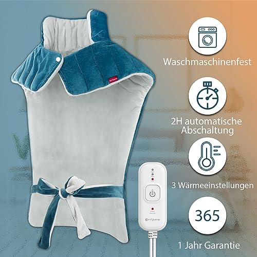 Comfytemp PESO Termoforo Elettrico per Cervicale, Schiena, Lombare, 1KG Scaldacollo Elettrico con 3 Livelli di Calore, Timer di Spegnimento Automatico, Grande Cuscino riscaldante con Cintura in Vita