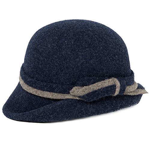 Comhats 100% lana 1920s Retro Fedora Cappelli Chiesa Cappelli Donne Feltro Cappello Classico Bowler, 91590_Navy Blue, m