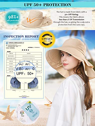 Comhats Cappelli da Sole Estivi da Donna Protezione UV da Spiaggia UPF50+ Cordino da Viaggio a Tesa Larga da Donna Cachi Medio