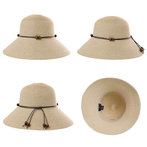 Comhats Cappello di paglia pieghevole da donna sulla spiaggia, a tesa larga, UV50+ UPF Protezione solare solare estiva da giardino, 00762_Beige, L
