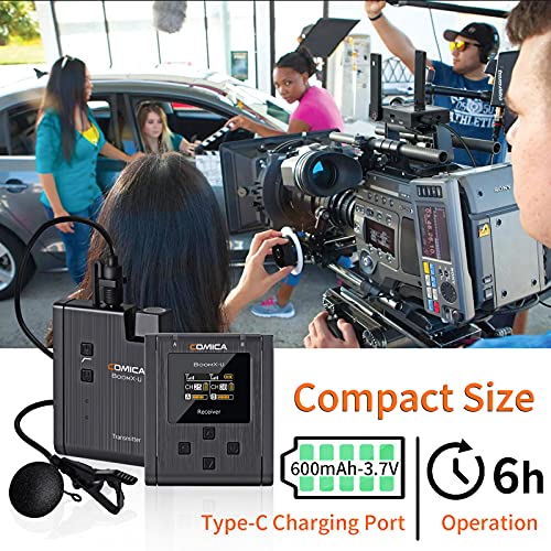 Comica BoomX-U U1 Lavalier - Microfono senza fili UHF a livello di roadcasting, mini microfono multifunzione con 2 microfoni a clip, compatibile con fotocamera DSLR, smartphone, YouTube Facebook Live