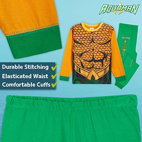 DC Comics Aquaman Pigiama Ragazzo Cotone Lungo, Pigiami Bambino Due Pezzi 5-14 Anni (Arancio, 7-8 Anni)