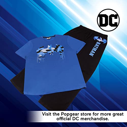 DC Comics Batman Camo Drip Logo Herren Lange Pyjamas Set Schwarz Blau L | Dark Knight Superheld Nachtwäsche, Geburtstagsgeschenkidee für Männer