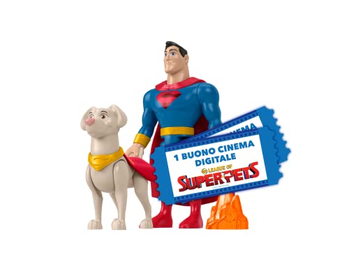 Dc Comics DC League of Super-Pets Superman & Krypto, Giocattolo per Bambini 3+ Anni, HGL02 + 2 Buoni Cinema DC League of Super-Pets