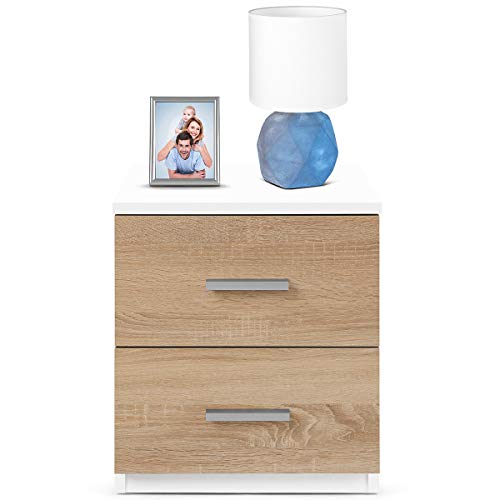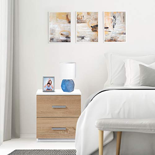 COMIFORT Comodino - Tavolino per la Camera da Letto in Stile Nordico, Moderno e Minimal, con 2 Spaziosi Cassetti, Molto Resistente, di Colore Bianco e Rovere Sonoma