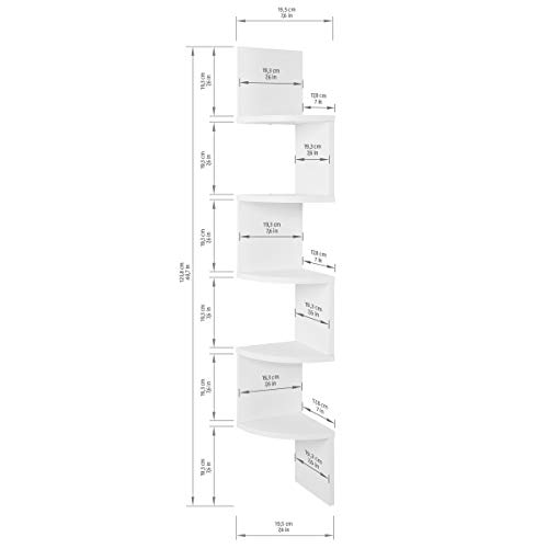 MATERIALE e DIMENSIONI: libreria angolare durevole, composta da pannelli in conglomerato ad alta densità. Facile da pulire. Misure libreria: 123,8 cm (altezza) 19,5 cm (larghezza) 17,8 cm (profondità)
