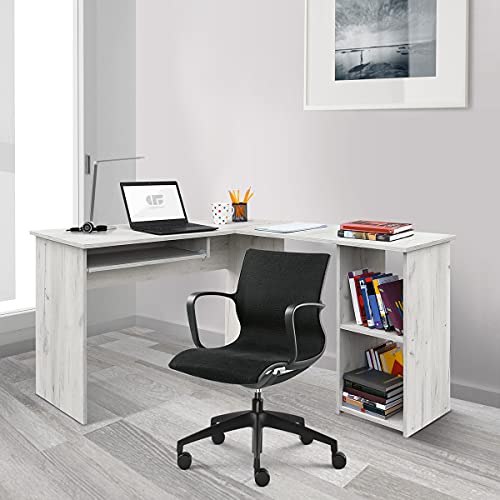 MATERIALE e DIMENSIONI: Scrivania dal montaggio facile, 75 cm (altezza) 120/140 cm (larghezza) x 48/40 cm (profondità). Materiale Melammina Impermeabile.