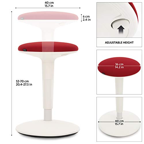 COMIFORT Sgabelli cucina Hanoi con altezza regolabile, girevole a 360°, base curva, seduta imbottita e rivestita in tessuto. Sgabello rotondo multifunzione per casa, lavoro o bar. Colore: bianco-rosso
