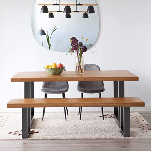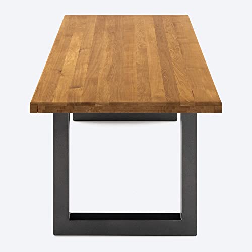 COMIFORT Tavolo da Pranzo - Mobile da Ufficio in Legno di Rovere Massello Verniciato, Bordo Dritto, Fabbricato in Europa, Gambe in Acciaio di Colore Grafite, Misure 140 cm x 75 cm