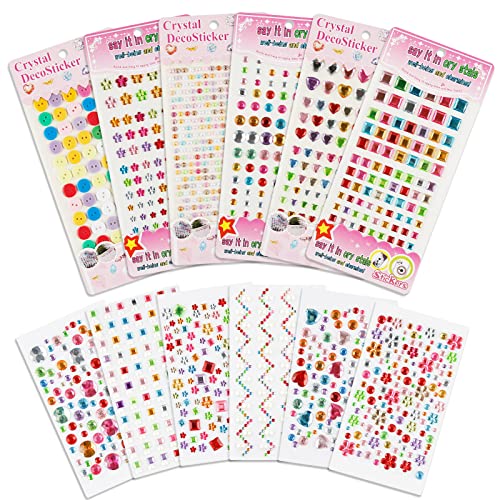 Comius Sharp 12 Fogli Autoadesivi Adesivi Strass Strass, Adesivi In Cristallo Acrilico, Per Artigianato Fai Da Te Decorazione Chiodi, Viso, Cornice Fotografica
