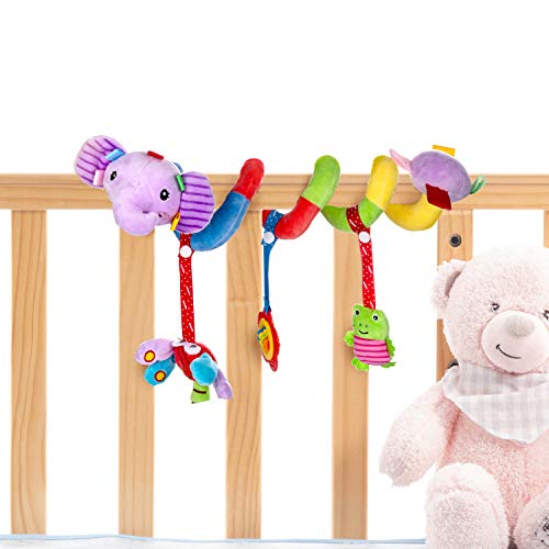 Comius Sharp Giocattolo da Appendere per Carrozzina, Giocattolo Appeso Sonagli, Giocattoli Morbidi a sonagli,Spirale di Tessuto per la Presa e per Il Tatto,per Passeggino. (Elefante)