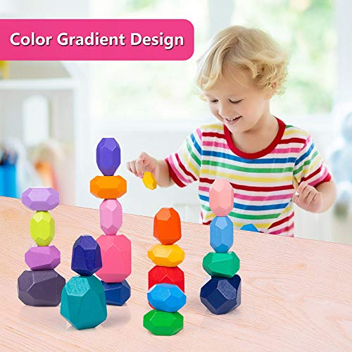 Comius Sharp 20 Pezzi Blocchi di Costruzione di Pietre, Wooden Stone Stacking Pietre Impilabili, Set di Rocce in Legno Blocchi di Bilanciamento Giocattolo Educativo per Bambini Ragazzi Ragazze