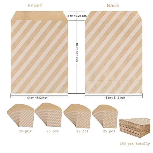 Comius Sharp 100 Pezzi Sacchetti di Caramelle in Carta Kraft, Candy Cookie Favor Popcorn Pasticceria Snack Buffet Involucri di Generi Alimentari, 4 Sacchetti a Strati Senza Cera, 13 x 18 CM