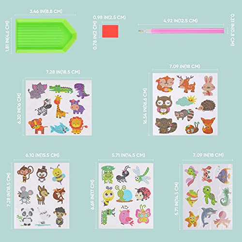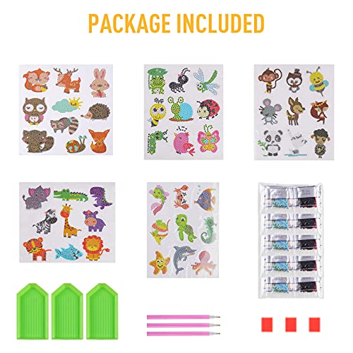 Comius Sharp Pittura Diamante Adesivo per Bambini, 46 Pezzi 5D Diamante Kit per Bambini, Animale DIY Adesivi Pittura Diamante, Diamond Painting Kit per Bambini Regalo di Festa Accessori Decorativi
