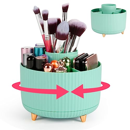 Comius Sharp Portapennelli Da Trucco, 360 Rotante Organizzatore Trucco, 5 Scomparti Porta Pennelli Trucco Per Cosmetici Rossetti Profumo, Bagno Camera Da Letto Toletta Cosmetici Vetrina (Verde Chiaro)