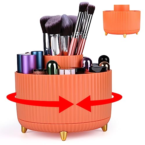 Comius Sharp Portapennelli Da Trucco, 360 Rotante Organizzatore Trucco, 5 Scomparti Porta Pennelli Trucco Per Cosmetici Rossetti Profumo, Bagno Camera Da Letto Toletta Cosmetici Vetrina (Arancione)