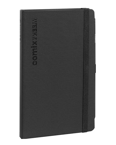 COMIX, Large Vertical - Agenda 2024 Settimanale 12 Mesi, Chiusura Con Elastico e Passante Elastico per Matita o Penna, Copertina In PU Termovirante, Doppio Segnalibro - Cm 13x21 - Nero Tenax