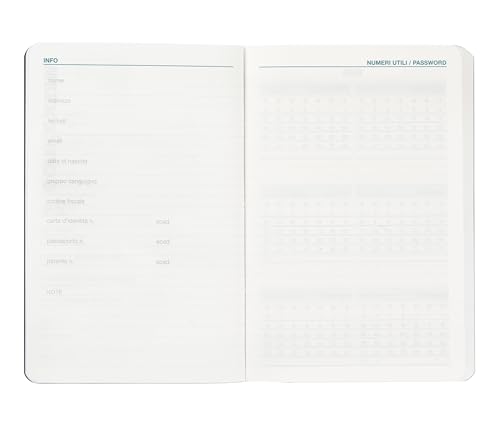 PER LAVORO E UNIVERSITA': all'interno tasca a soffietto contenitiva, chiusura con elastico large 8mm, doppio segnalibro, cover con taglioal vivo. Realizzata in materiale coagulato metal termovirante con goffratura effetto asfalto