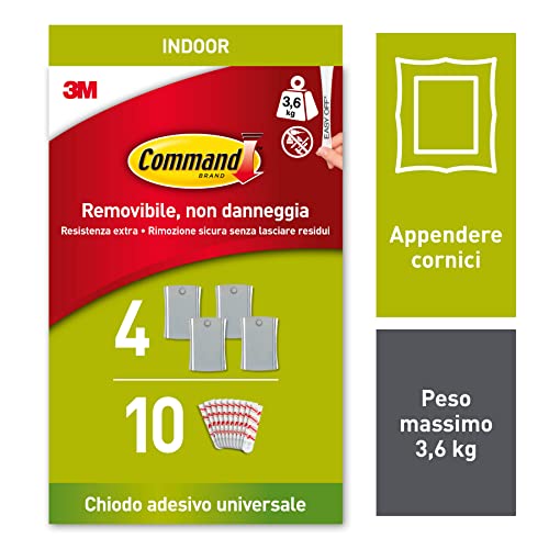 Command Chiodo Adesivo Universale XL per Cornici con Passepartout- 4 Chiodi e 10 Strisce Adesive - ottimale per Appendere Quadri, Specchi e Orologi senza Forare o Danneggiare il Muro - Fino a 3,6 Kg
