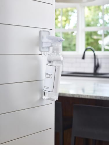 Command Gancio adesivo per Flacone Spray, 2 Ganci e 6 Strisce- Supporto ottimale per Flaconi Spray Pulizia Casa senza Forare o Danneggiare il Muro
