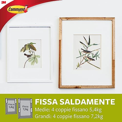 Command Strisce Appendi Quadri Adesive Medie e Grandi Bianche, Confezione da 8 Coppie di Strisce M e 8 L - ottimale per Appendere Quadri, Cornici e Specchi al Muro senza Chiodi