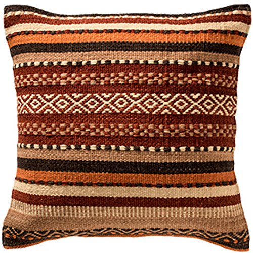 Commercio equo e solidale Shillong kilim copricuscini fatto a mano su Handlooms utilizzando 80/20 lana/cotone, colori naturali e, Brown, 45 x 45cm
