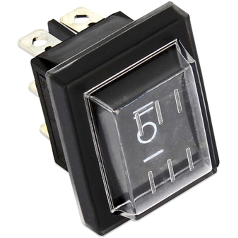 Commutatore interruttore bipolare nero con 6 contatti a faston i-o-ii guaina di protezione posizioni i - o - ii