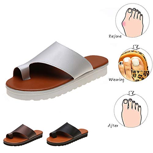 Comodi Sandali Con Plateau,Sandalo Splint In Pelle PU Con Supporto Per Arco, Sollievo Dal Dolore,Pantofole Comode Resistenti All'usura Di Correzione Dell'alluce Valgo ( Color: Silver, Size: 39 )