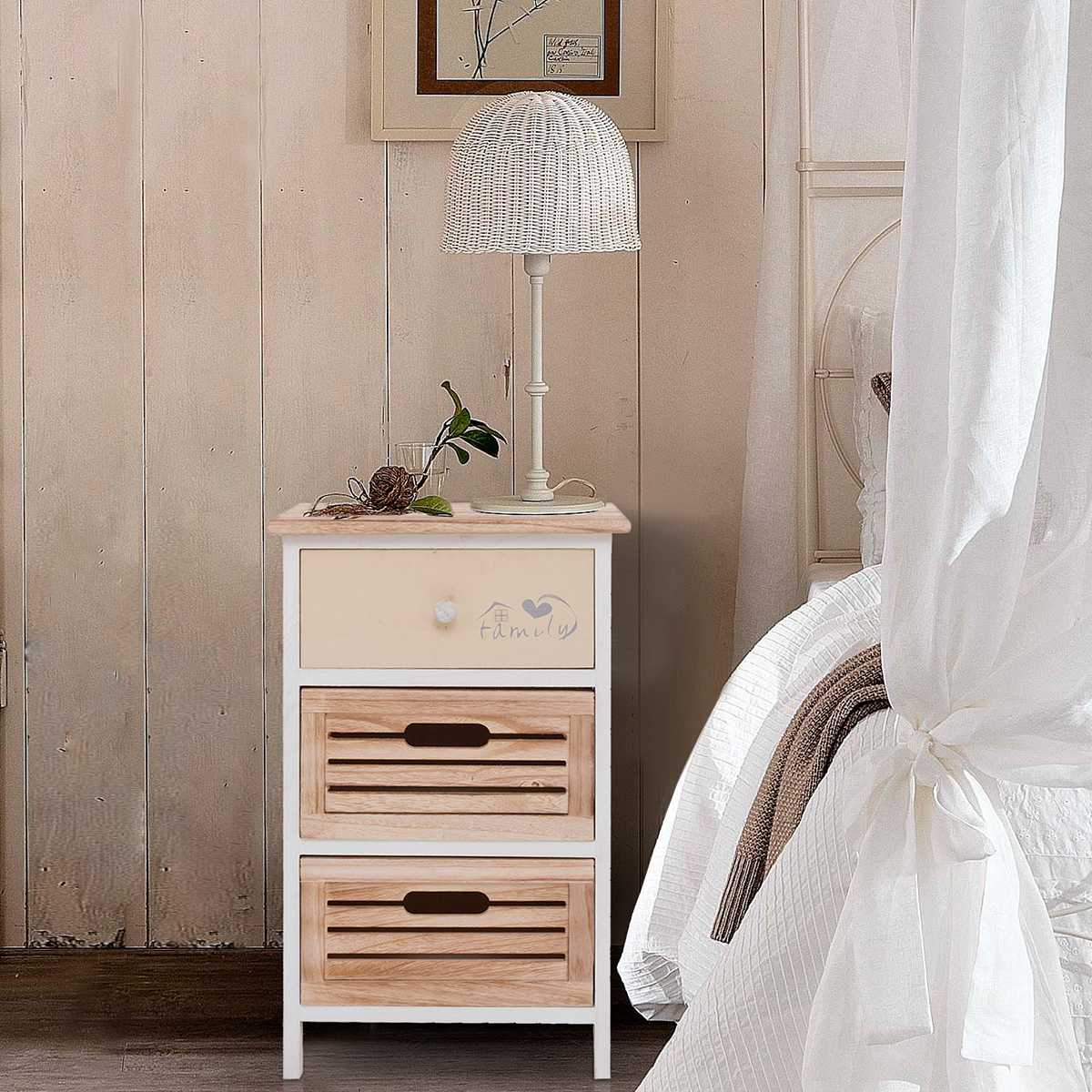 Comodini My Home 3 Cassetti in Legno Beige 56x35x29. Misure: h. 54 x l. 35 x p. 27 cm - Misure cassetti: h. 14 cm x l. 28 cm - Misure cassetti inferiori (2): H 16 cm x L 30,4 cm x P 24 cm. Pratico e funzionale mobiletto dallo stile vintage con stampe decorative sui cassetti. Ideale per tutti gli ambienti della vostra casa, il giusto mix per donare un tono urban e chic alla vostra casa.