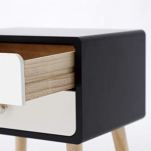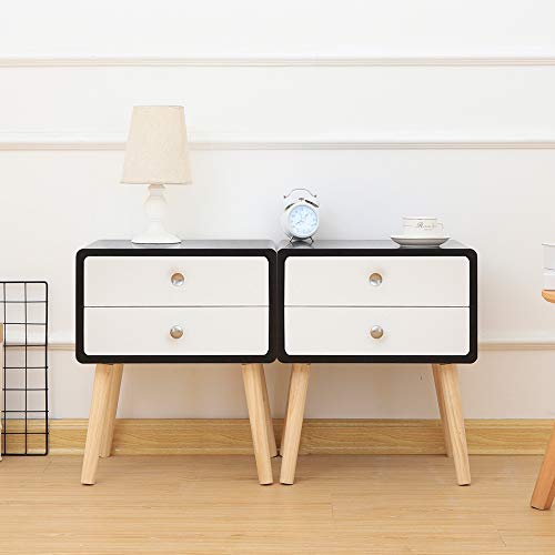 Comodino - Set di 2 comodini stile scandinavo, con 2 cassetti, gambe in legno di pino, comodino scandinavo, camera da letto, soggiorno, ufficio (2 nero e bianco)