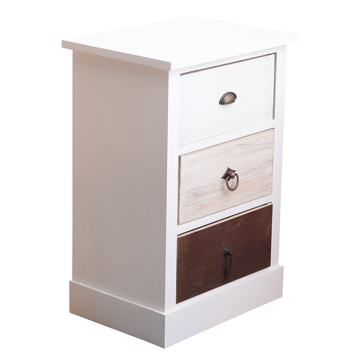 In legno, 3 cassetti bianco/beige/marrone. Misure: h 46 cm x l 31 cm x p 27 cm - Misure cassetto legno: h 10,5 cm x l 22 cm x p 24,5 cm - Misure cassetto vimini: h 19 cm x l 20 cm x p 24,5 cm. Grazie al suo stile unico, questa cassettiera si adatta perfettamente ad ogni ambiente living. I dettagli ricercati renderanno eleganti e originali gli ambienti della vostra casa.