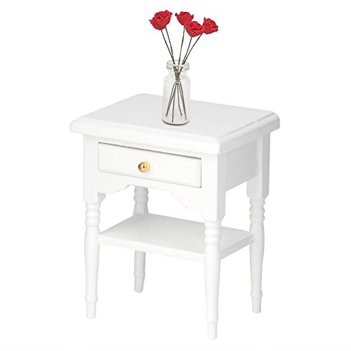 Comodino giocattolo, comodino in legno di dimensioni compatte 1:12 mini per camera da letto delle bambole