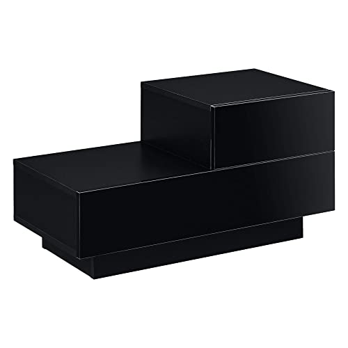 En.casa - Comodino da Notte a 2 Cassetti 38 x 70 x 35 cm Cassettiera e Portaoggetti Mobile da Divano/Letto Posizione a Destra - Nero, Frontale Lucido